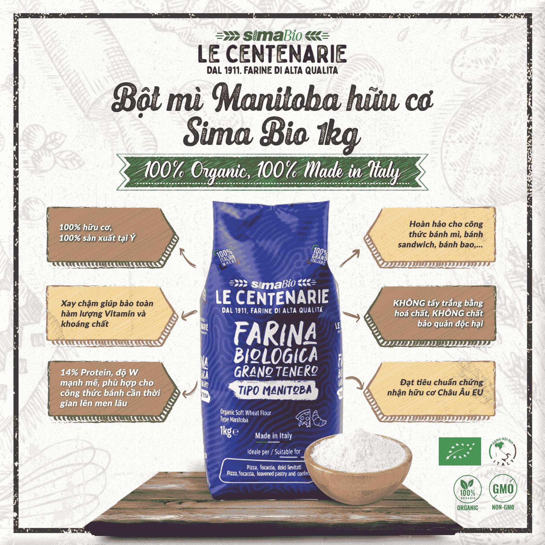 Thành phần: 100% Bột mì Manitoba hữu cơ