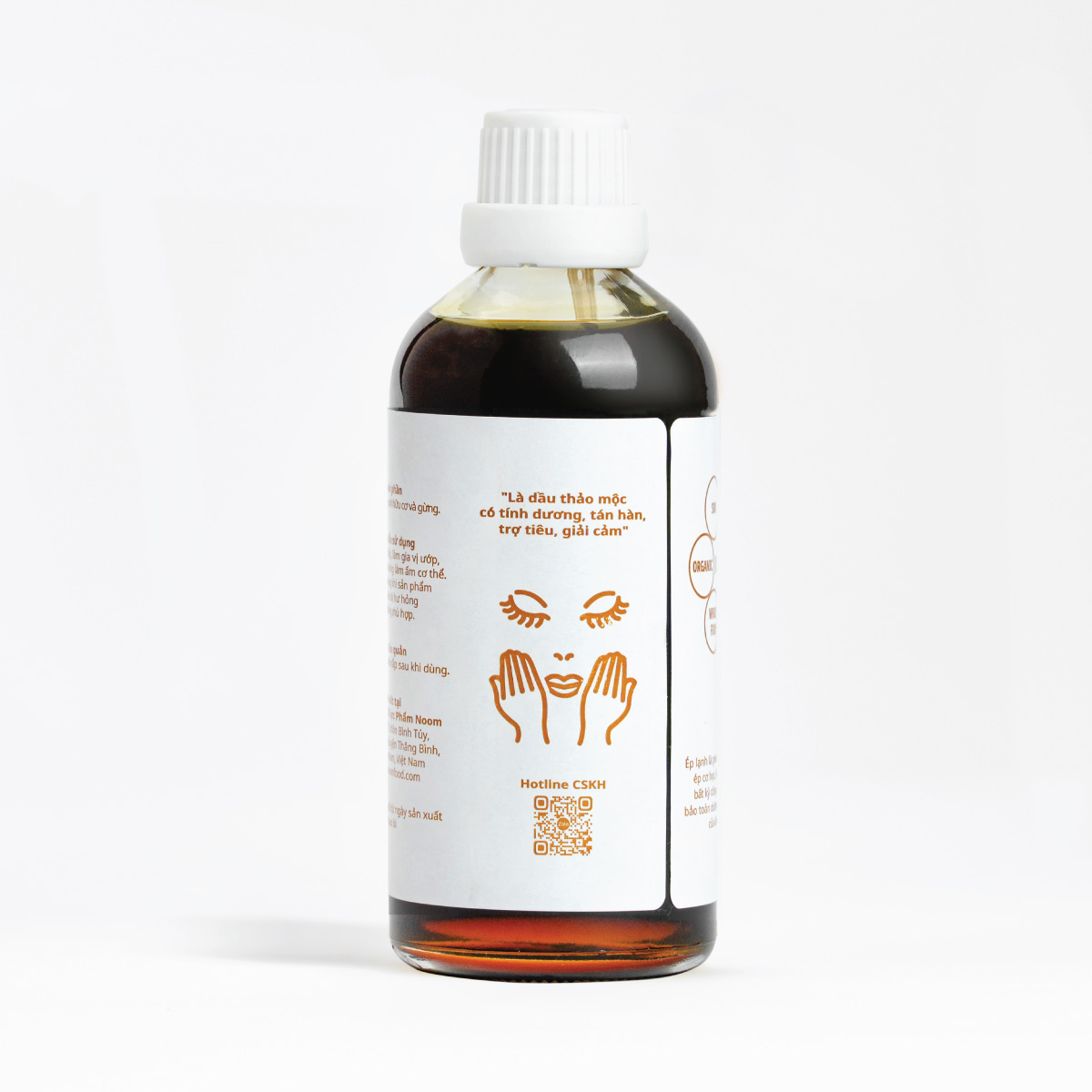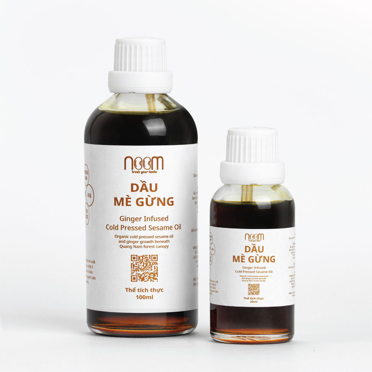 Bột gừng ngâm với dầu mè đen ép lạnh hữu cơ trong 3 tháng. Sau đó ép cơ học, lọc kỹ và đóng chai.