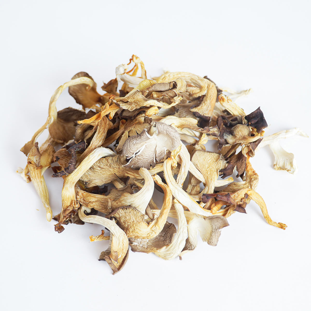 100% nấm bào ngư xám tươi sấy khô ở nhiệt độ 40-60 độ trong 15 giờ.